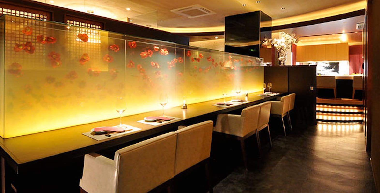 西麻布交差点から徒歩30秒、六本木ヒルズからも5分圏内とアクセス抜群の立地。店内はテーブル席に加え、半個室や8名用の完全個室も完備しており、接待や記念日にも重宝されています。